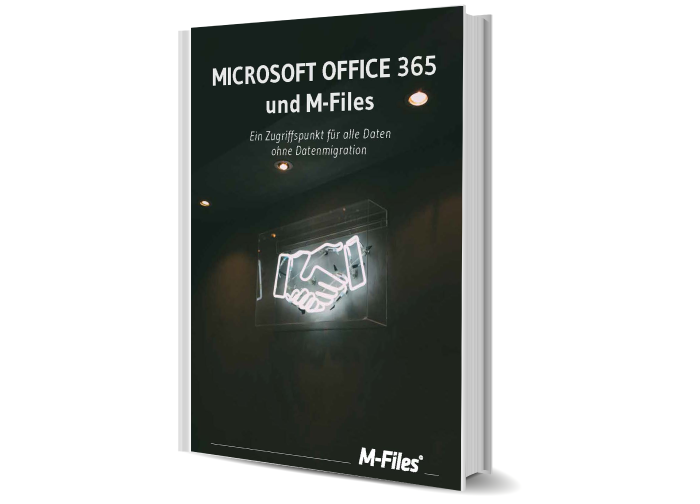 Wir alle nutzen Microsoft Office 365 jeden Tag, aber holen wir in unserem Arbeitsalltag auch das Maximum aus dieser Lösung heraus? In diesem eBook erfahren Sie, was Unternehmen daran hindert Office 365 in vollem Umfang zu nutzen und wie das metadatenbasierte Dokumentenmanagementsystem M-Files dieses Problem löst. Mit M-Files machen Unternehmen Office 365 zum einheitlichen Zugang, über den alle relevanten Informationen Ihres Unternehmens im richtigen Kontext angezeigt und abgerufen werden können.